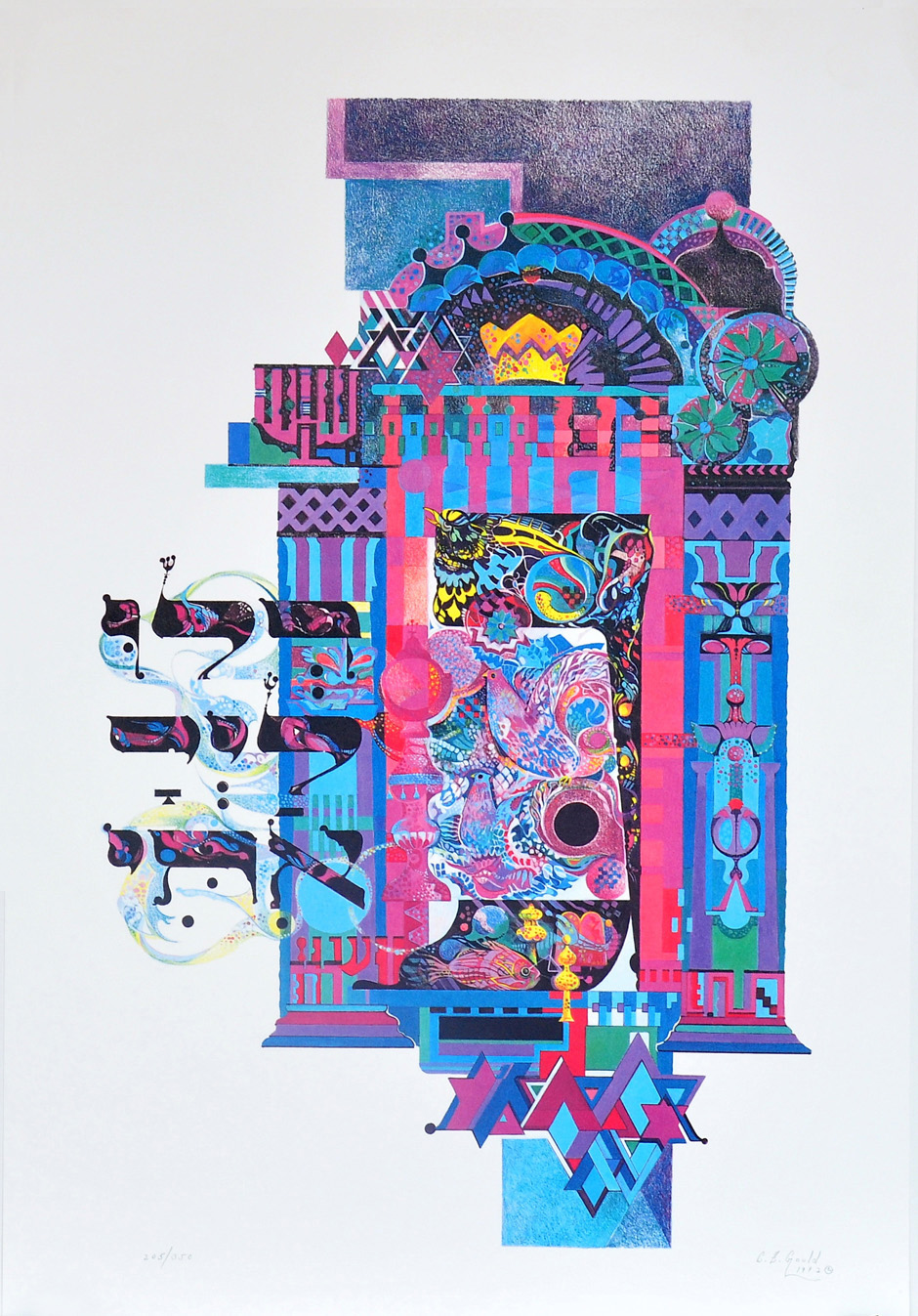 “GADLU L’ADONAI ITI… EXTOL THE LORD WITH ME” is the third in a series of iconoscapes’ based on the Hebrew alphabet.